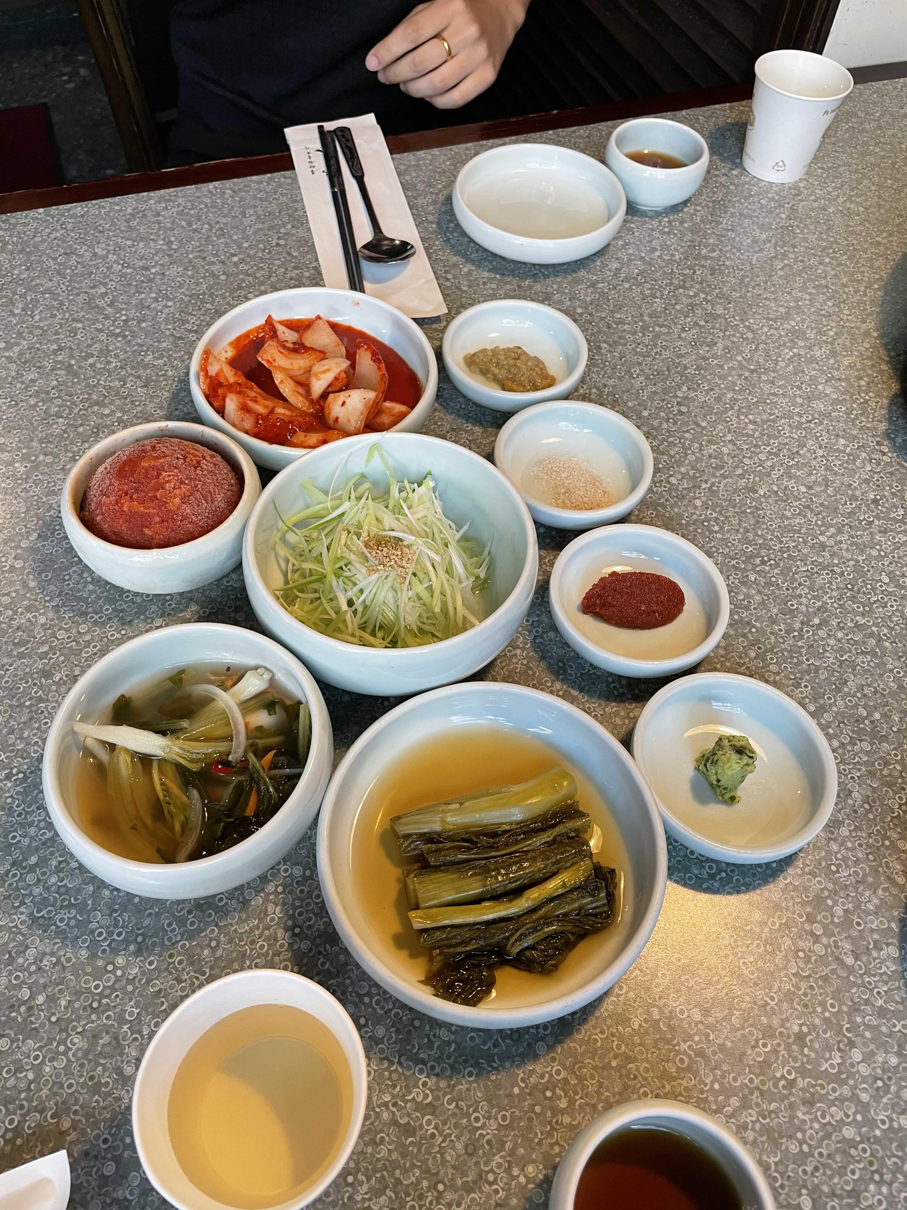 아주 빠르게 밑반찬을 셋팅해준다