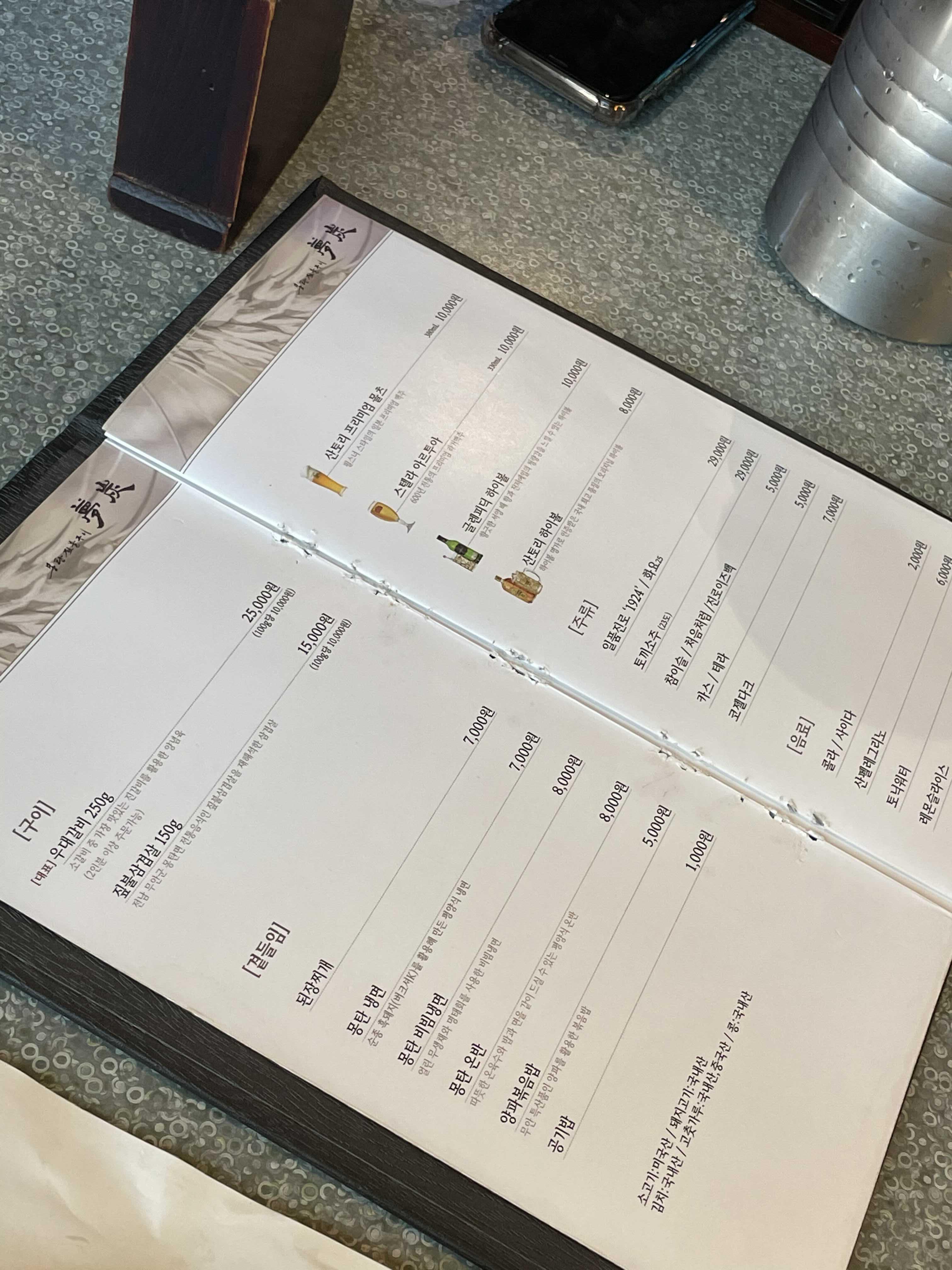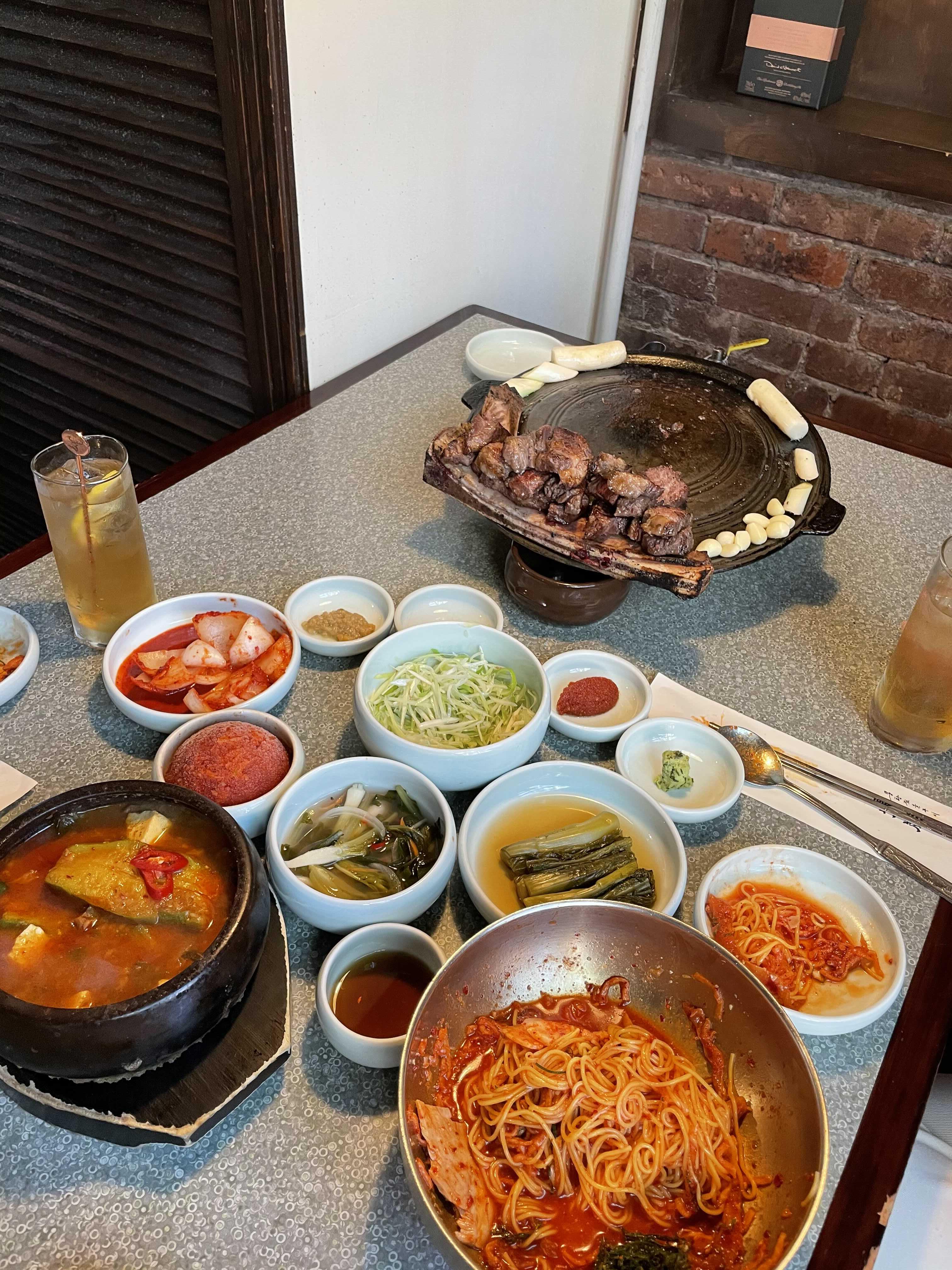 3인이서 몽탄 시그니처인 우대갈비 3인분, 몽탄비빔면, 된장찌개 주문